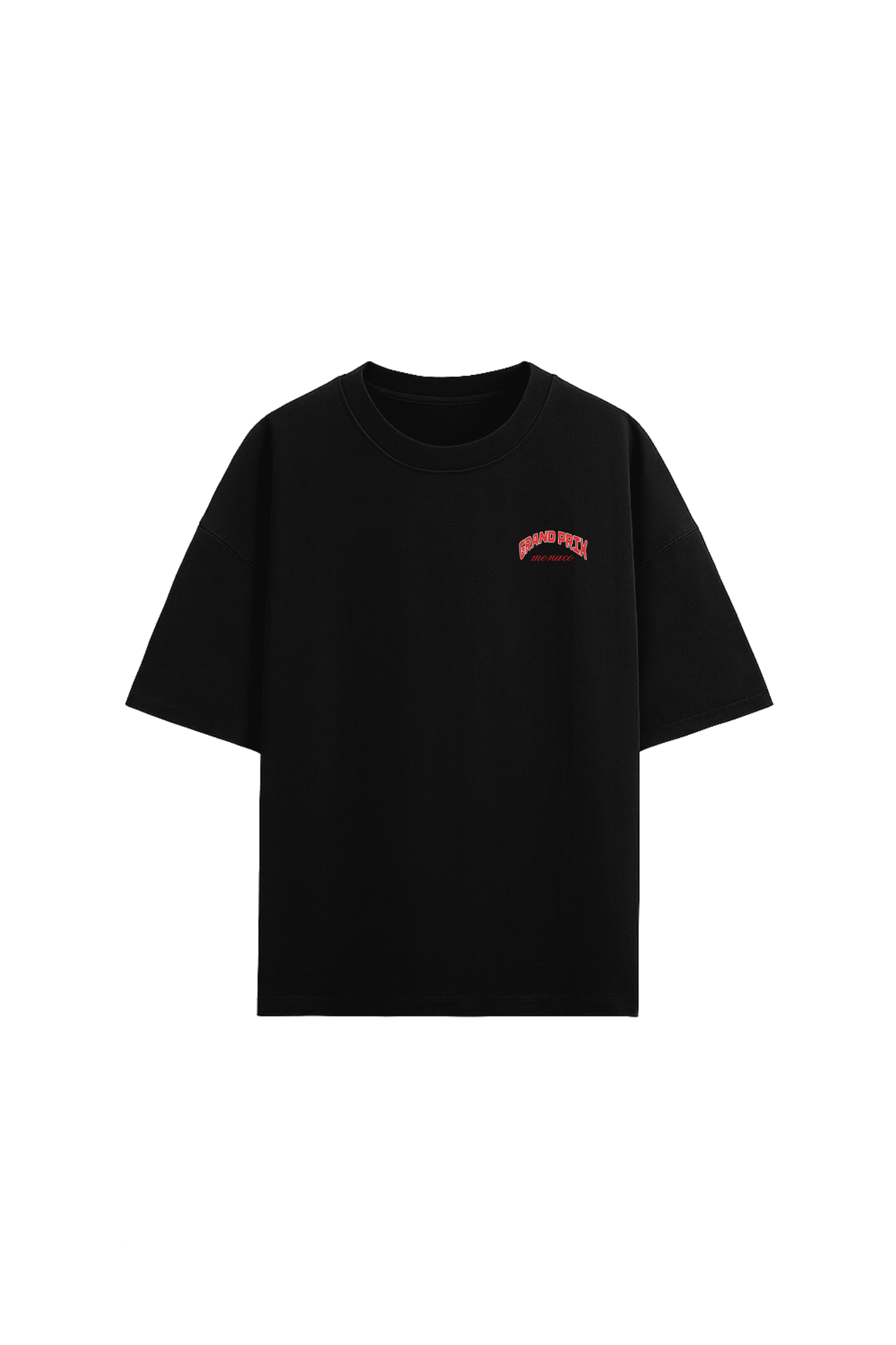 THE FRONT FEATURES A MINIMAL YET COMMANDING WHITE FORMULA 1 ICON, SIGNIFYING PURE SPEED AND PRECISION. THE BACK SHOWCASES A VIBRANT SCARLET RACING MACHINE IN FULL MOTION, ACCOMPANIED BY BOLD “GRAND PRIX” LETTERING AND ELEGANT “CIRCUIT DE MONACO” DETAILING, PAYING HOMAGE TO THE LEGENDARY STREET CIRCUIT WHERE CHAMPIONS ARE MADE.